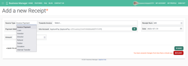 Generate Receipts for Invoices or other income like donations and loans. Receipts can also be downloaded as PDFs or emailed directly to your Clients. Once an Invoice has been receipted, weather in full or not, the invoice will state the amount that has been Paid and the Total due. Your Invoice list comes to life as it indicates which Invoices have been partially or fully Paid.