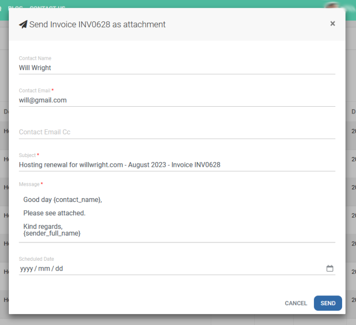 Creating Invoices ahead of schedule? Schedule your emails to be sent at a later stage.